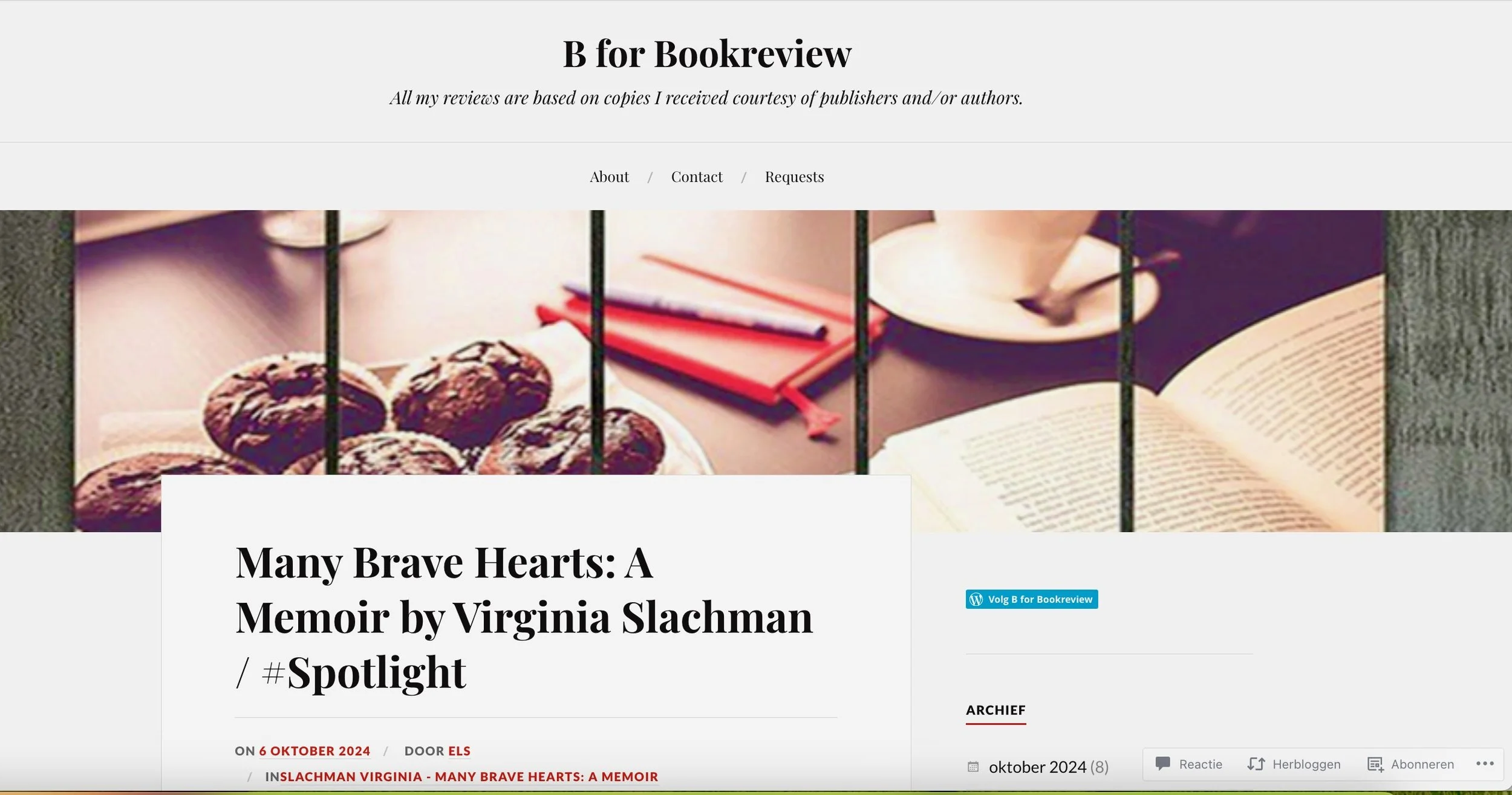 https://bforbookreview.wordpress.com/2024/10/06/many-brave-hearts-a-memoir-by-virginia-slachman-spotlight/
